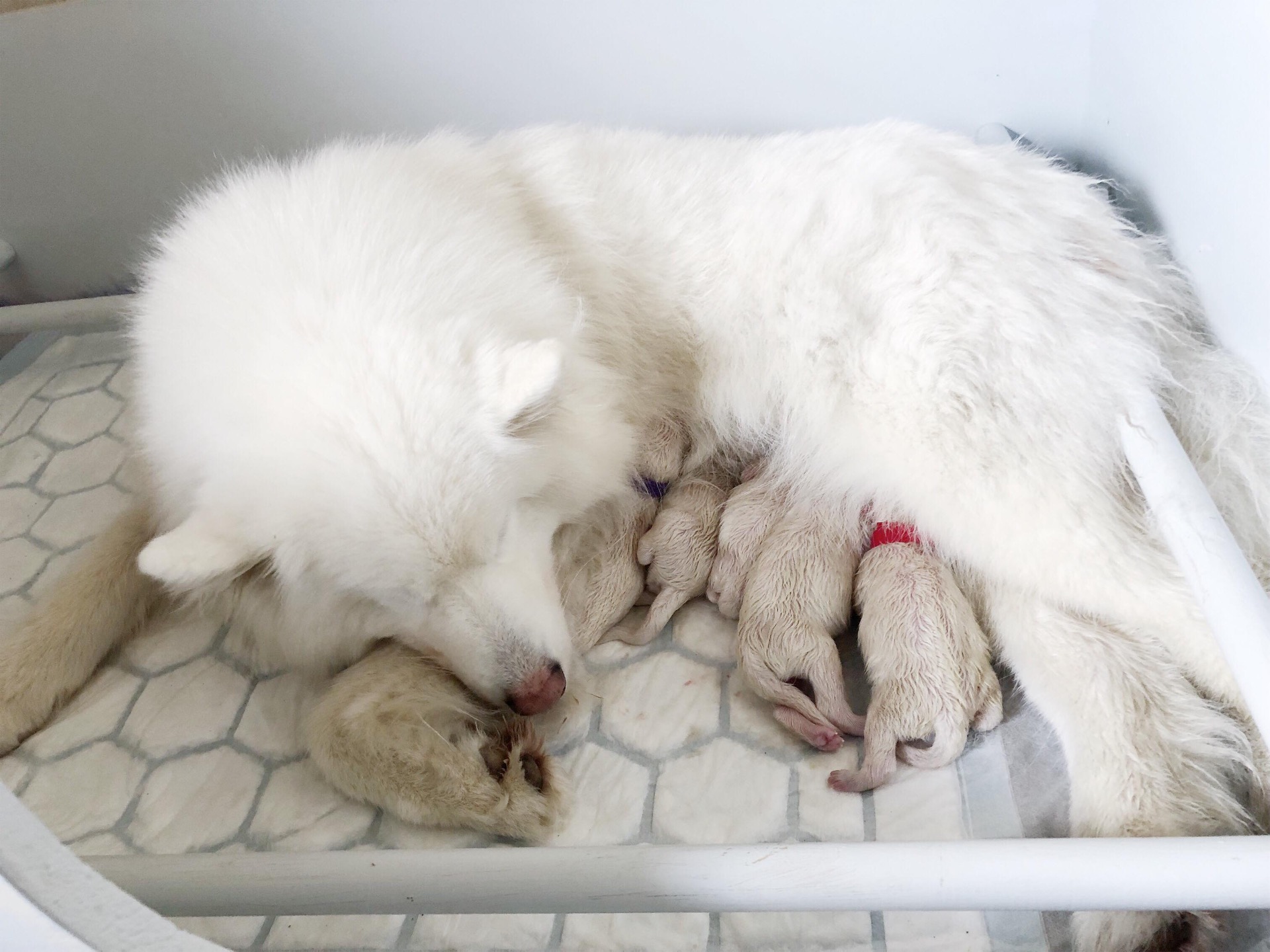 I dag den 20.05.2019 kom 5 små vidunder til verden. Fødselen gikk uten noen store komplikasjoner og alt står bra til med mor og valper.